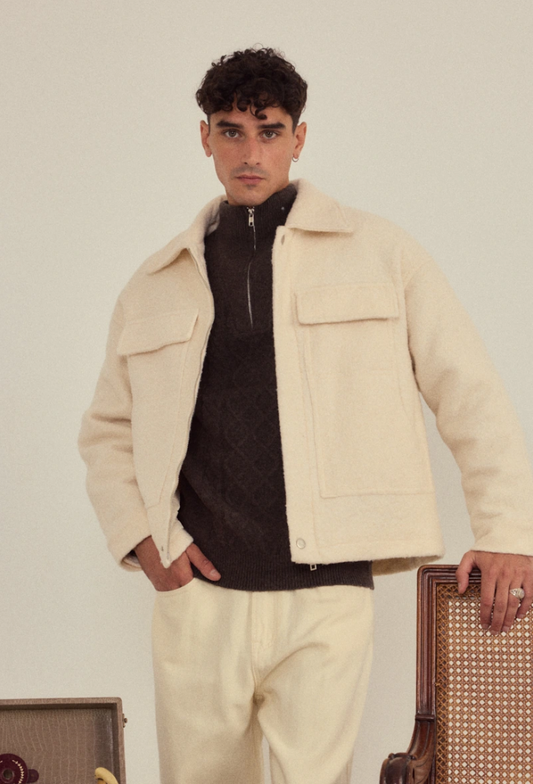 Pure Wol — Écru Overshirt Jacket Minimalist warmth with quiet sophistication.The Pure Wol Écru Overshirt...