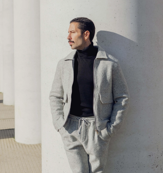 Feltro LA Grigio I A felted-touch zip jacket in light grey with a sharp collar...