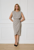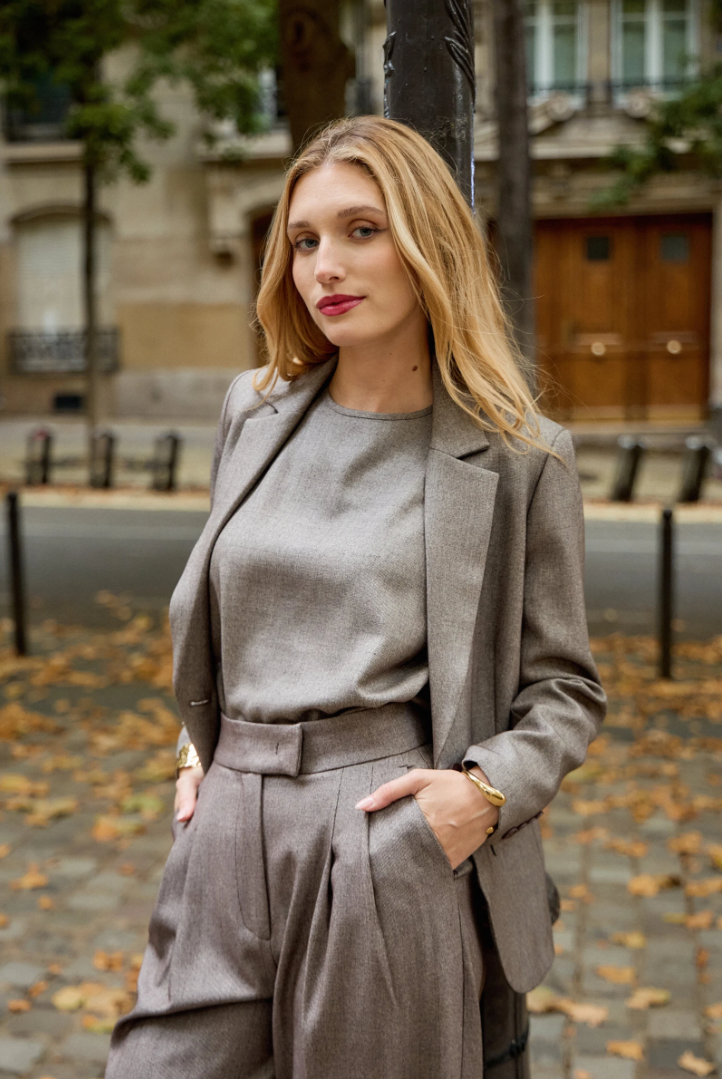 Kombiner med en wrap-nederdel og pumps for et raffineret aftenslook, eller med wide-leg bukser og loafers til moderne city-chic. Guld-smykker fremhæver Dorica Smanicato’s arkitektoniske skulder.
