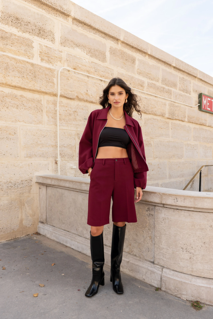 City-tailoring met Italiaanse nonchalance. Deze bermuda is strak gesneden met een rechte pijp die net boven de knie valt: modern, chic en verrassend veelzijdig.