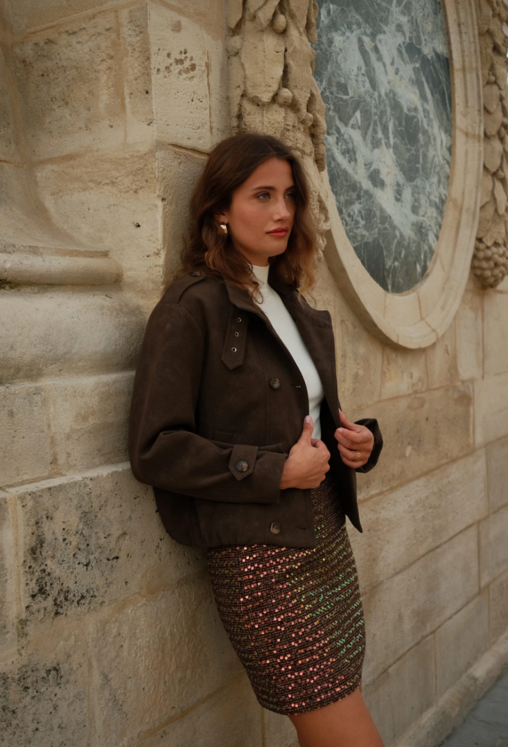Het suède voelt warm, soepel en luxe aan, terwijl de subtiele epauletten, manchetten met knoopsluiting en de licht geblouseerde onderzoom de jas een unieke proportie en attitude geven. Dit is een statement piece dat elke look direct karakter, stijl en autoriteit verleent.