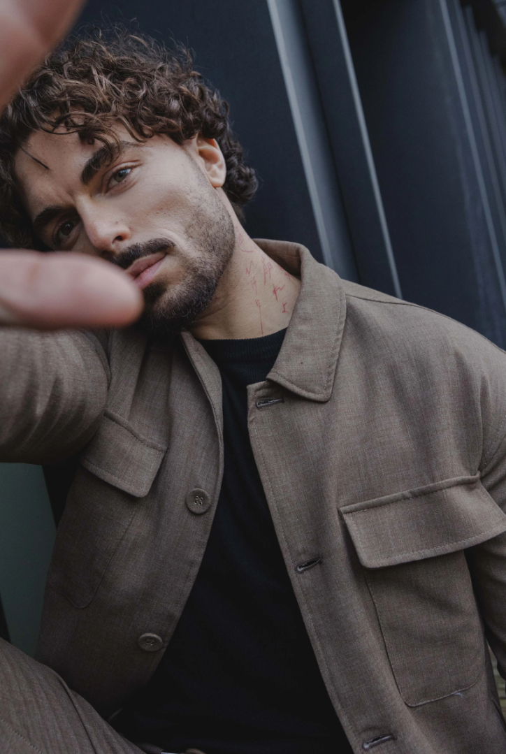 Quiet luxury with Parisian nonchalance. The Cers Rive Gauche set — shirt-jacket and trousers — combines clean lines, precise tailoring, and a subtle tortora mélange that pairs effortlessly with everything. Wear them together as a modern city suit, or separately as smart, versatile wardrobe foundations.