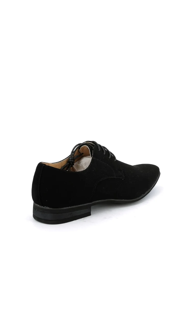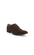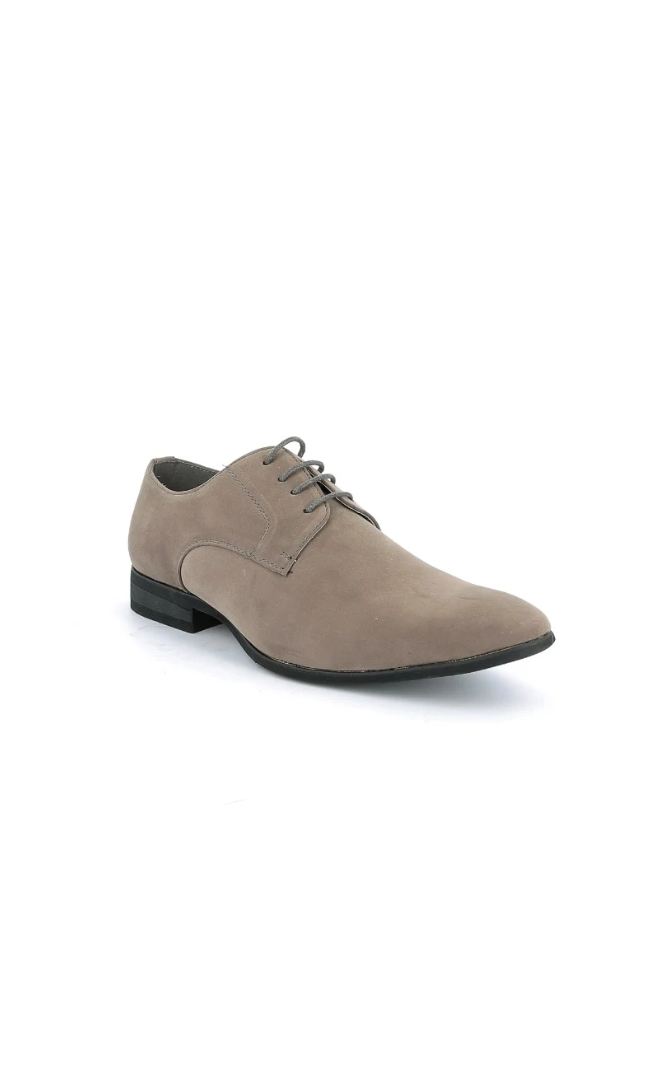 A suede derby with a sleek, almond-shaped profile and a calm, polished presence.