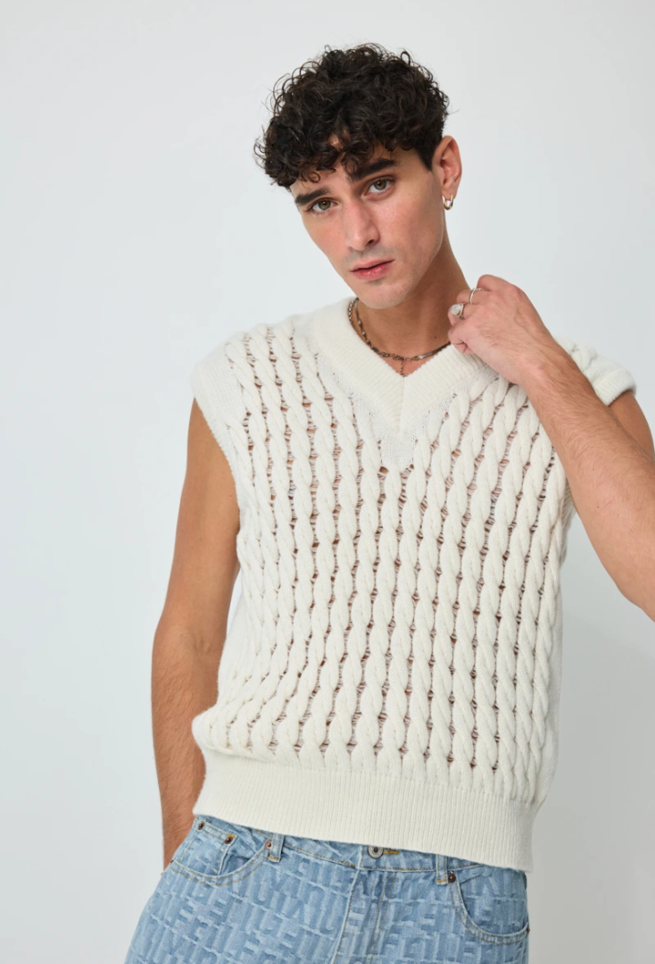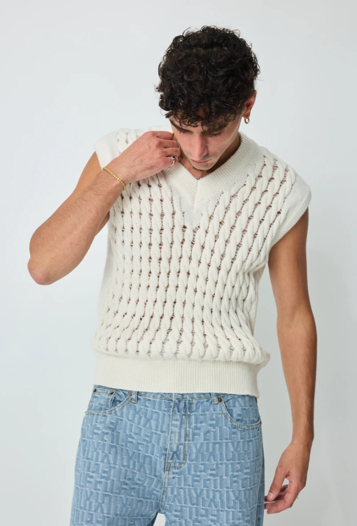 Craftsmanship and texture intertwine in this refined sweater featuring a delicately braided knit. The openwork structure adds subtle depth and lightness, while the soft wool blend provides warmth and comfort. A modern V-neck silhouette that moves effortlessly between casual and tailored moments.