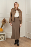 Een verfijnde A-lijn rok met subtiele micro-weave textuur en een mooi vloeiende val.