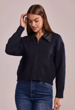 Front zipper: wear open as a cardigan or closed as a knit top.