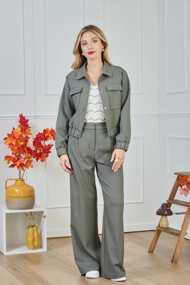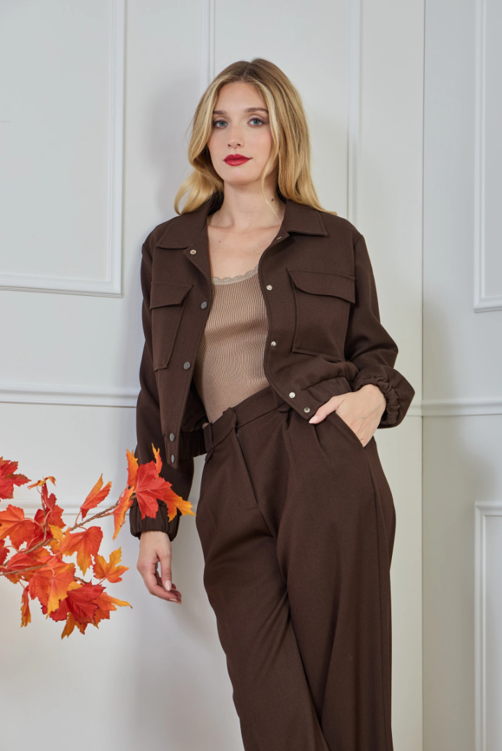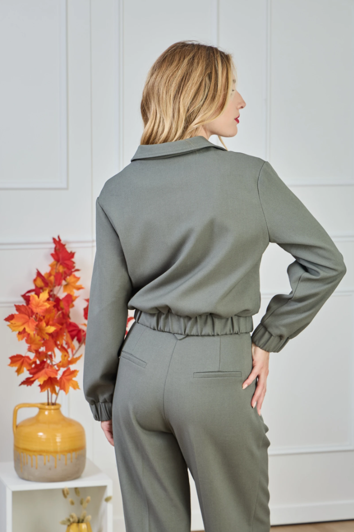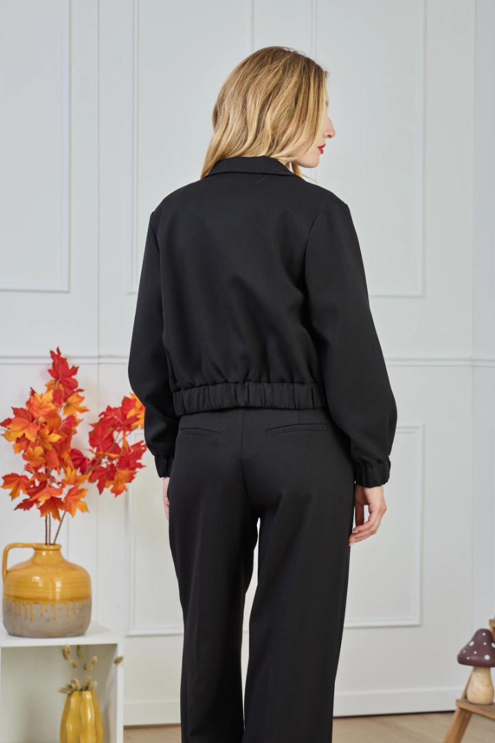 ✔ Cropped fit — ends at the waist for a clean, elongated line.