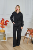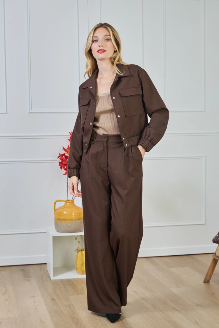 Pair with the matching wide-leg trousers and loafers for office chic, or with denim and pumps for a relaxed evening look. Gold-tone jewellery accentuates the utility-meets-tailoring vibe.