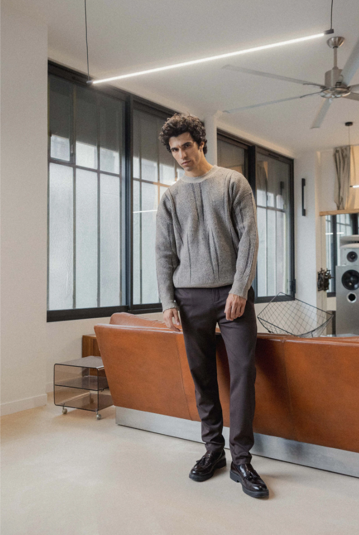 Fine-rib men’s sweater with a classic crew neck. Crafted in a luxurious grano sottile knit that offers refined texture and a subtle sheen. The slim fit with a touch of stretch ensures comfort and sophistication, while maintaining its shape throughout the day. The soft, breathable fabric strikes the perfect balance between luxury and everyday functionality.