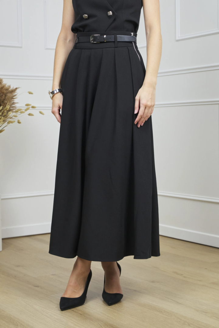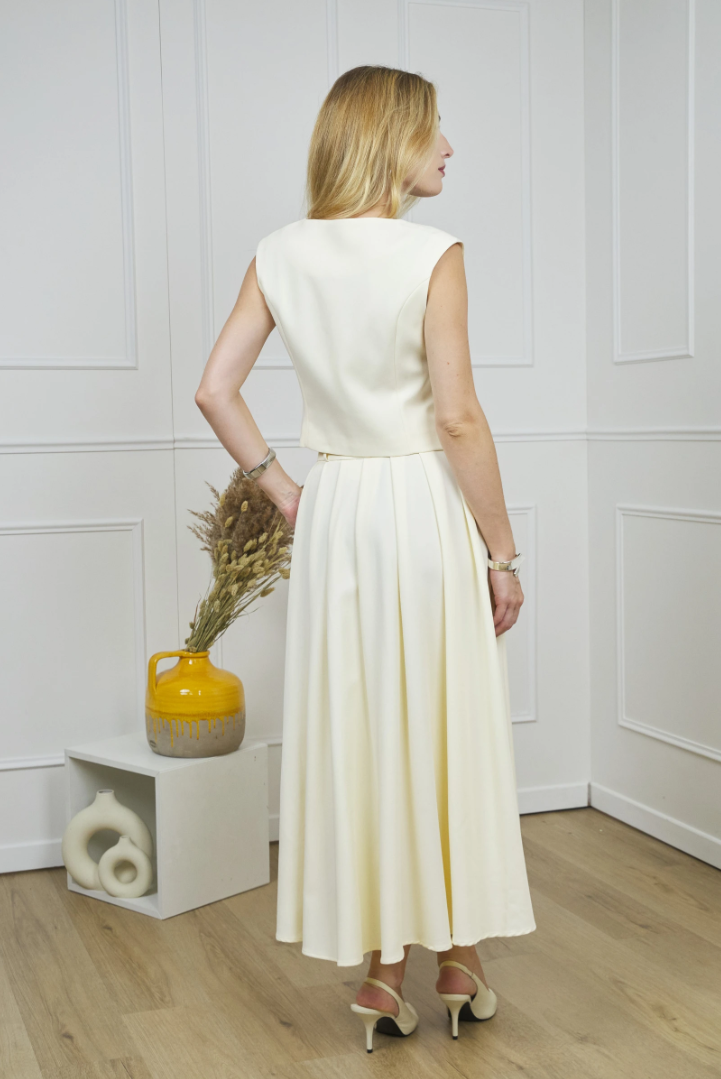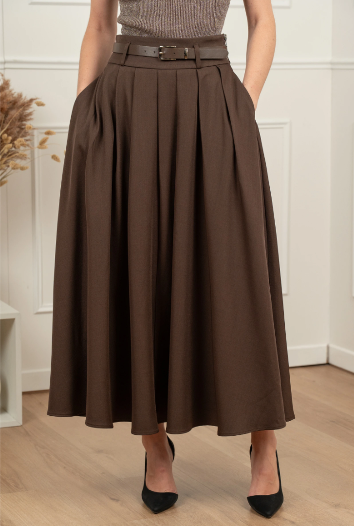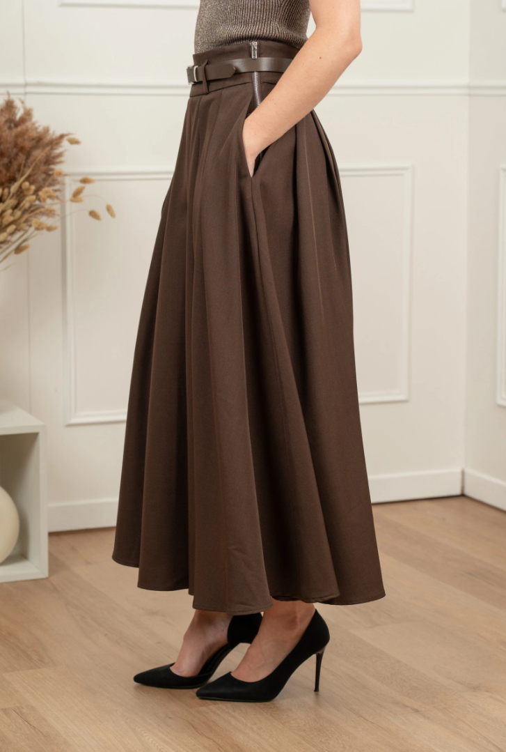 Grace with an Italian accent. A high waist, full movement, and elegant midi length create that theatrical yet effortless silhouette that takes you seamlessly from office to evening.