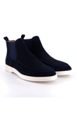 Een hybride ontwerp dat de nonchalante elegantie van een moc-toe met het gemak van een Chelsea boot combineert. Gemaakt van zacht, premium suède en geplaatst op een lichte, sportieve zool — een silhouet dat even verfijnd als comfortabel is.