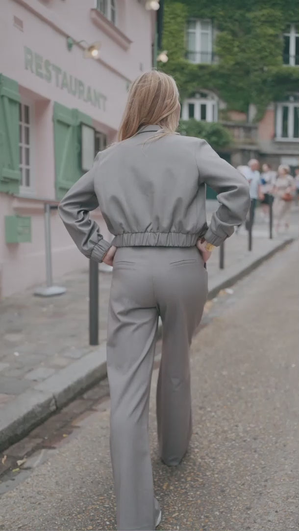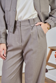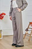 High-waisted wide-leg trousers crafted from the same lightweight mélange suiting with a hint of stretch as the Giacca Corta Utility Blazer. A neat waistband with belt loops, front pleats, and a pressed crease lend a tailored finish, while the relaxed leg drapes fluidly — perfect for a modern city suit.