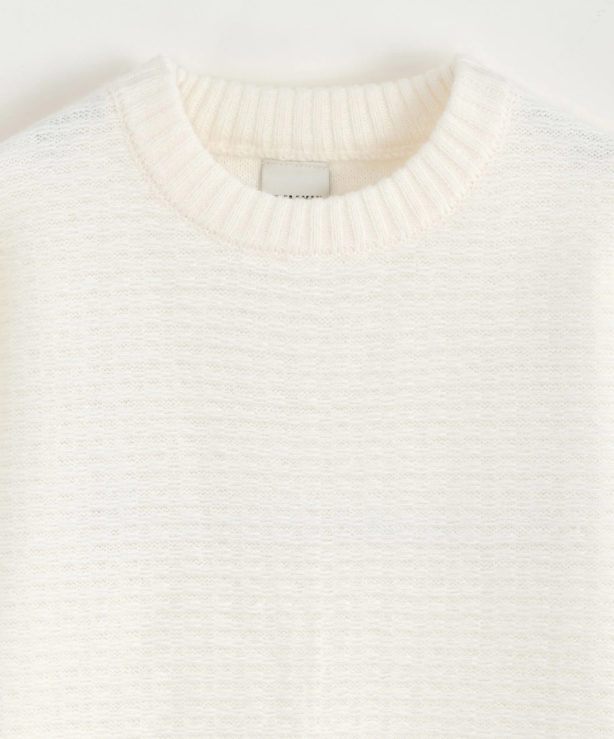 Een frisse offwhite knit, ontworpen voor ademend comfort en moeiteloos draaggemak.