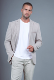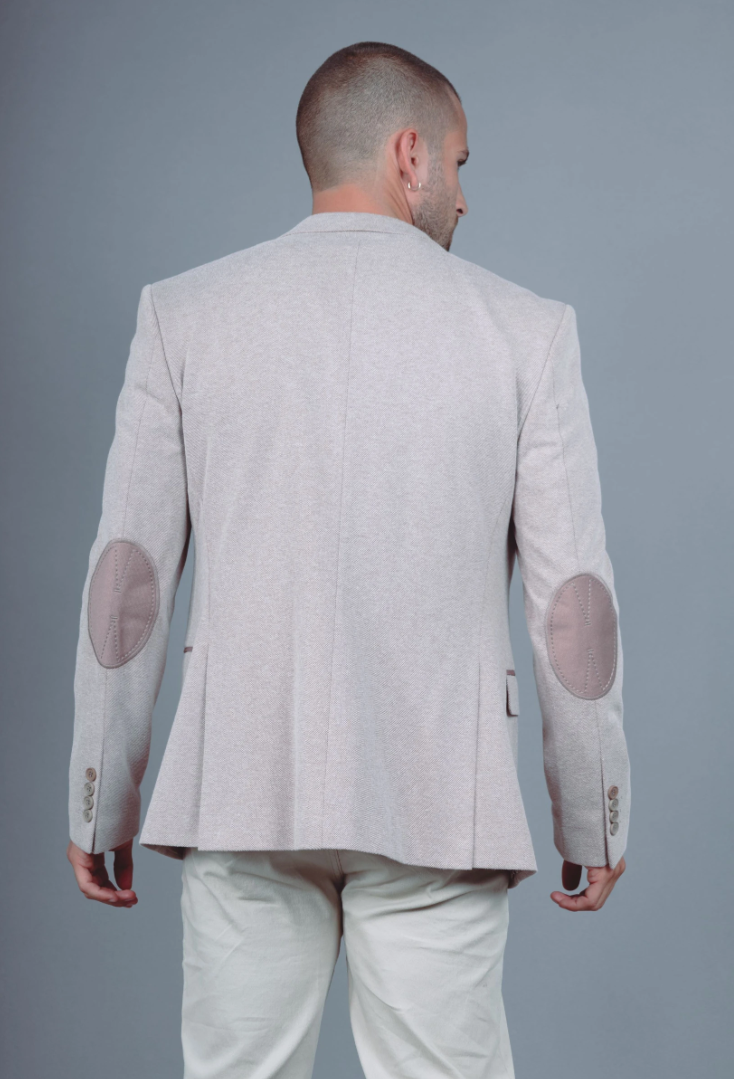 Blazer in een verfijnde sabbia-tint met een zachte, gemêleerde structuur. De subtiele elbow patches en cleane lijnen geven ‘m een moderne, ontspannen elegantie. Licht, comfortabel en moeiteloos te combineren—ideaal voor zowel city looks als smart-casual dagen.