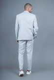 Een modern, lichtgewicht tweedelig pak in een verfijnde lichtgrijze mélange. De blazer valt strak in zijn lijnen zonder stijf te ogen, terwijl de pantalon een rechte, ontspannen fit behoudt die het geheel moeiteloos modern maakt. Het resultaat is een set die tegelijk fris, draagbaar en stijlvol is—stille luxe in pure Crossar-vorm.
