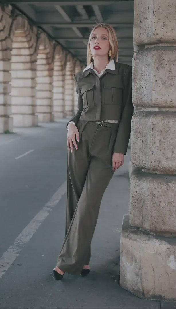 A modern, cropped field jacket in supple suiting fabric with a subtle melange.