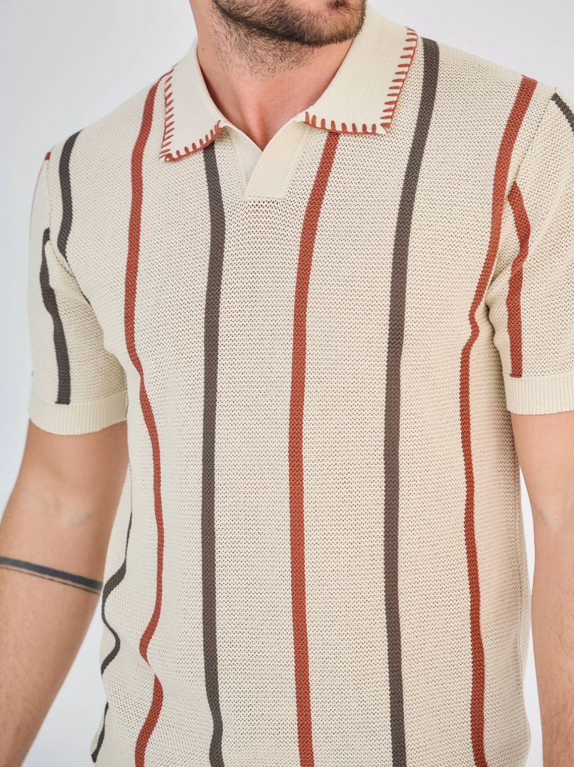 Righe Raffinate Polo – Buttonless Design